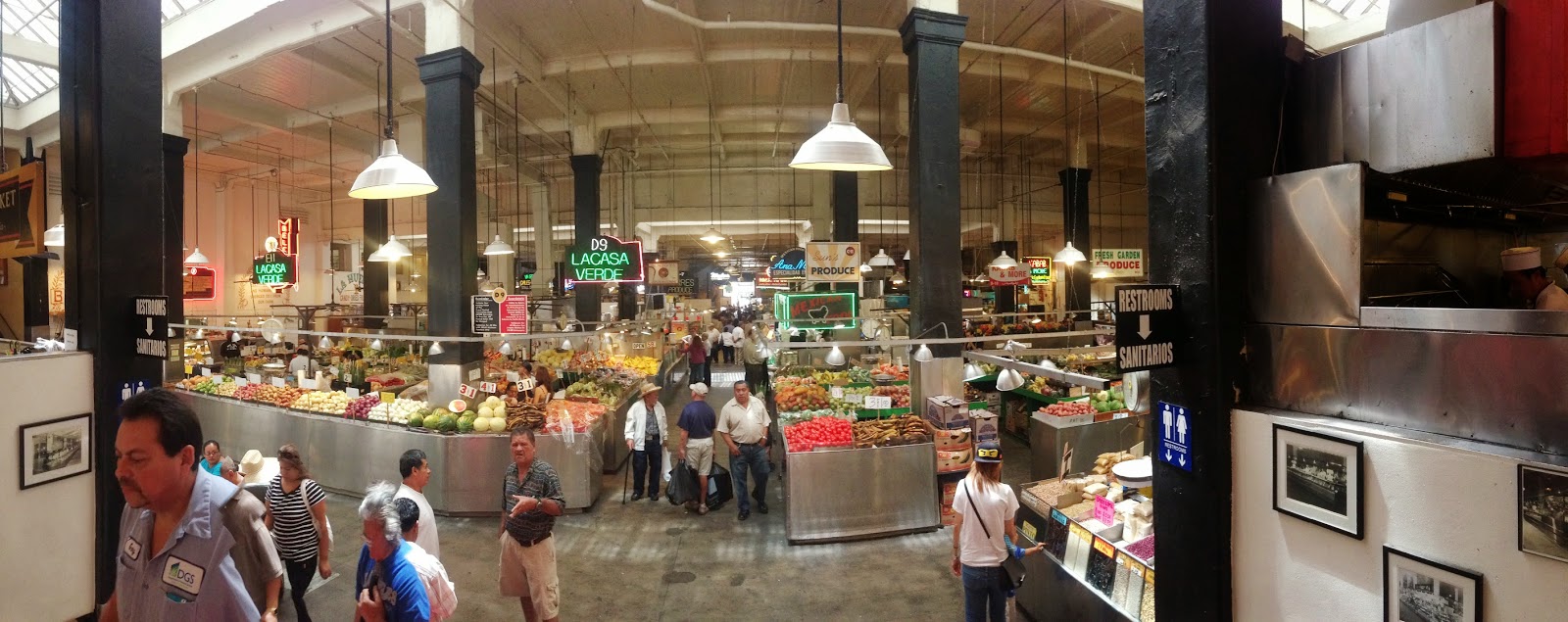 One Saturday a month my sisters and I would be packed into my parent’s mini-van and trek from East Los Angeles to the Grand Central Market to pick up bread, tomatoes, Little Debbie snack cake, bananas, lentejas, fish, mangos and a myriad other groceries. The day was a test in patience and endurance as my mother touched and smelled her way through the market seeking out the best eats at good prices. In those days, the market was hot, overtly busy and a mix of people.